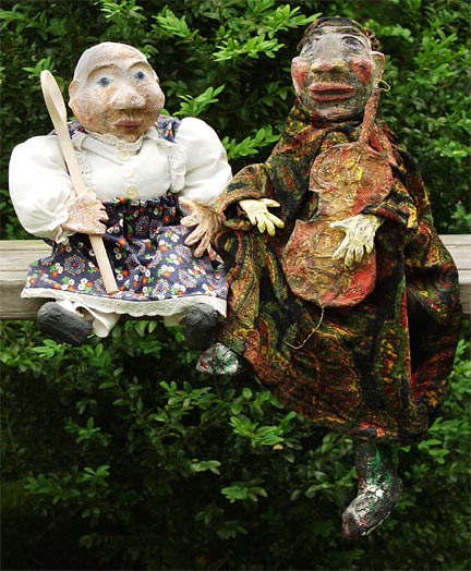 Zwei Puppen aus Pappmaché, von Silke angefertigt und angezogen!