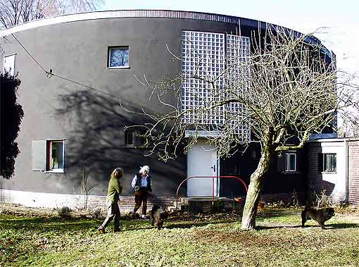Das Wohnhaus in Dahlewitz fällt schon durch seine außergewöhnliche Form auf, vorn ist es rund und schwarz, hinten rechtwinklig und weiß, was ihm den Spitznahmen "Käseecke" eingebracht hat.